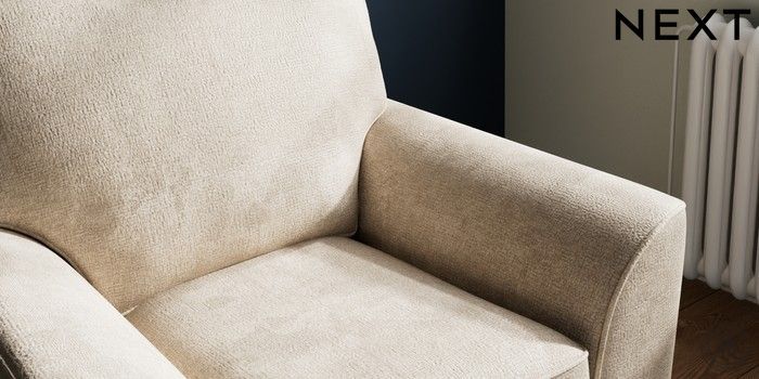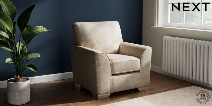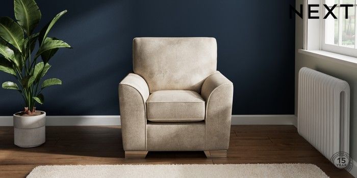 7.2.10 Stamford Small Armchair Plush Chenille Light Natural Square Angle - Chrome Metal | Made Click here to use our website with more accessibility support, for example screen readers