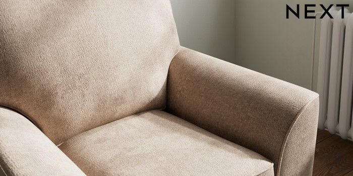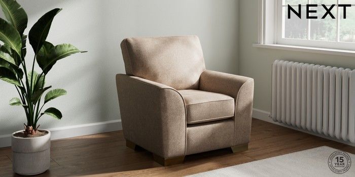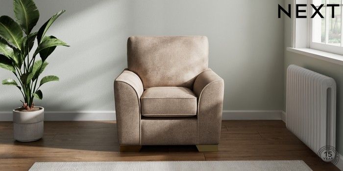 7.2.10 Stamford Small Armchair Plush Chenille Mid Natural Square Angle - Brushed Brass | Made Click here to use our website with more accessibility support, for example screen readers