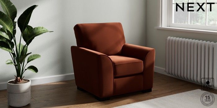 7.2.10 Stamford Small Armchair Plush Velvet Easy Clean Ginger Orange Square Angle - Dark | Made Click here to use our website with more accessibility support, for example screen readers