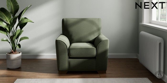 7.2.10 Stamford Small Armchair Relaxed Linen Look Dark Green Square Angle - Mid | Made Click here to use our website with more accessibility support, for example screen readers