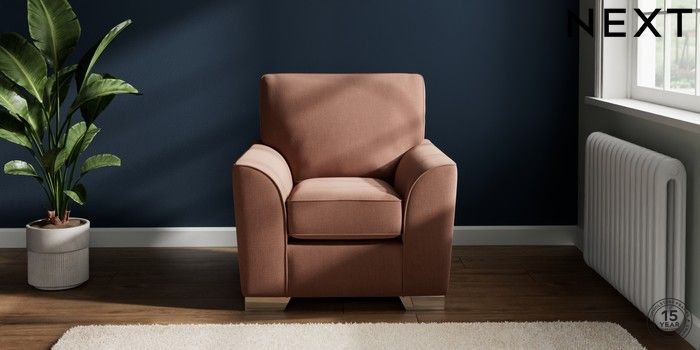 7.2.10 Stamford Small Armchair Relaxed Linen Look Light Rust Brown Square Angle - Chrome Metal | Made Click here to use our website with more accessibility support, for example screen readers