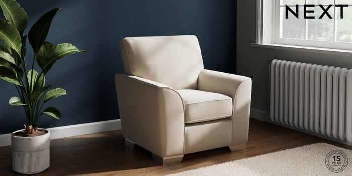 7.2.10 Stamford Small Armchair Studio Chenille Oyster Square Angle - Chrome Metal | Made Click here to use our website with more accessibility support, for example screen readers