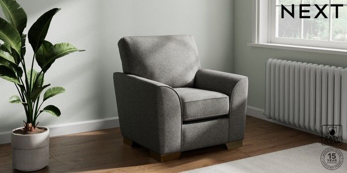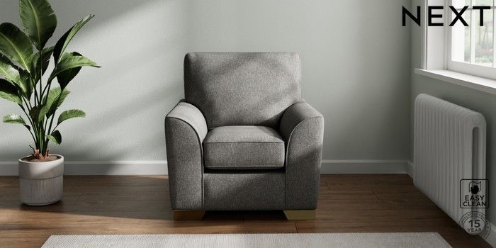7.2.10 Stamford Small Armchair Tweedy Blend Easy Clean Dark Grey Square Angle - Brushed Brass | Made Click here to use our website with more accessibility support, for example screen readers