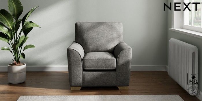 7.2.10 Stamford Small Armchair Tweedy Blend Easy Clean Dark Grey Square Angle - Light | Made Click here to use our website with more accessibility support, for example screen readers
