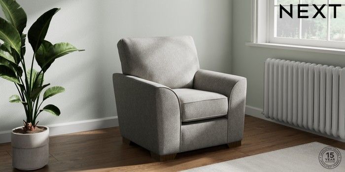 7.2.10 Stamford Small Armchair Tweedy Chenille Mid Grey Square Angle - Mid | Made Click here to use our website with more accessibility support, for example screen readers