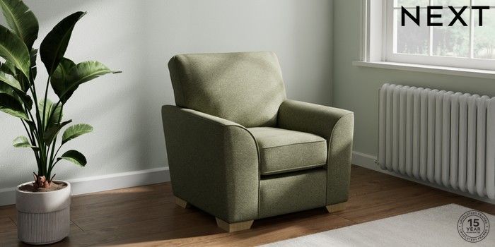 7.2.10 Stamford Small Armchair Tweedy Chenille Mid Moss Green Square Angle - Light | Made Click here to use our website with more accessibility support, for example screen readers