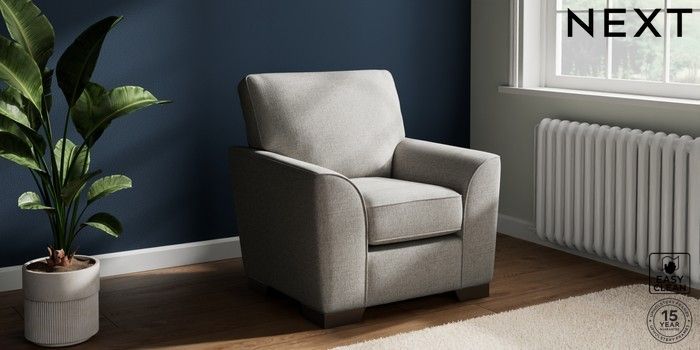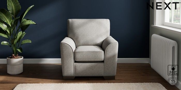 7.2.10 Stamford Small Armchair Woven Chenille Easy Clean Light Grey Square Angle - Gunmetal | Made Click here to use our website with more accessibility support, for example screen readers