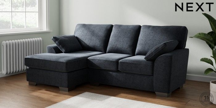 7.2.10 Stamford Small Sofa Chaise - Left Hand Boucle Chenille Dark Slate Blue Large Square Angle - Gunmetal | Made Click here to use our website with more accessibility support, for example screen readers