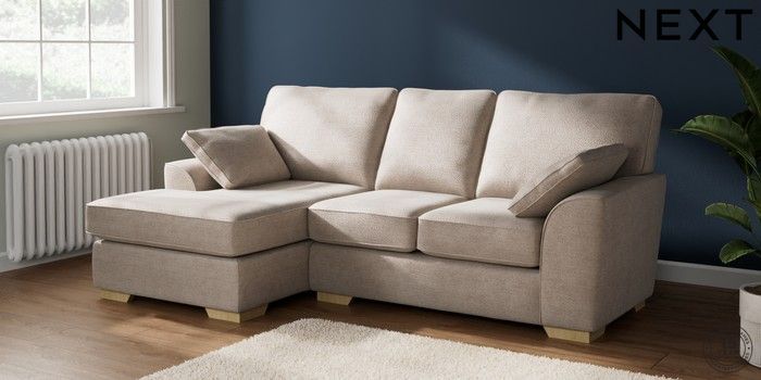 7.2.10 Stamford Small Sofa Chaise - Left Hand Boucle Chenille Light Natural Large Square Angle - Light | Made Click here to use our website with more accessibility support, for example screen readers