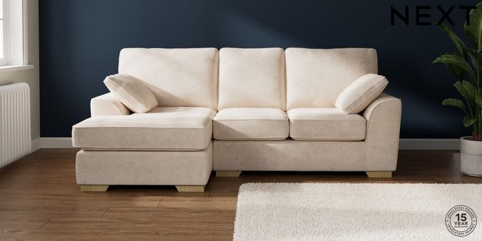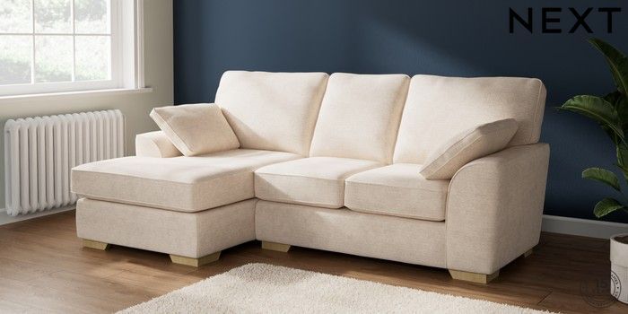 7.2.10 Stamford Small Sofa Chaise - Left Hand Boucle Chenille Oyster Large Square Angle - Light | Made Click here to use our website with more accessibility support, for example screen readers