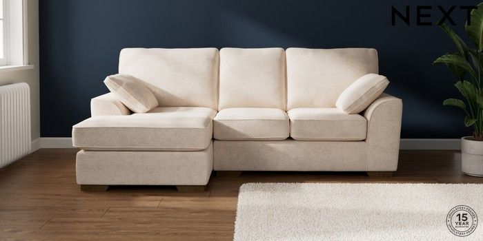 7.2.10 Stamford Small Sofa Chaise - Left Hand Boucle Chenille Oyster Large Square Angle - Mid | Made Click here to use our website with more accessibility support, for example screen readers