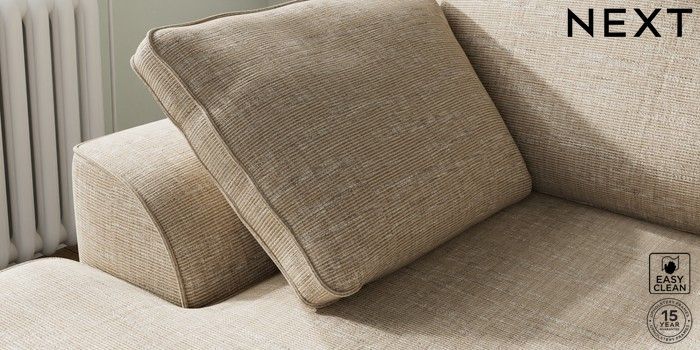 7.2.10 Stamford Small Sofa Chaise - Left Hand Boucle Weave Easy Clean Dark Natural Large Square Angle - Chrome Metal | Made Click here to use our website with more accessibility support, for example screen readers