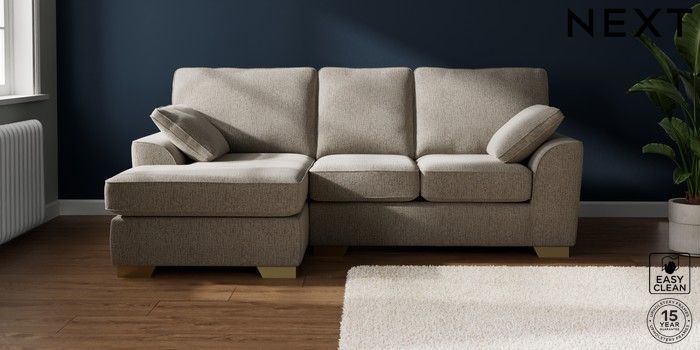 7.2.10 Stamford Small Sofa Chaise - Left Hand Chunky Boucle Easy Clean Dove Large Square Angle - Brushed Brass | Made Click here to use our website with more accessibility support, for example screen readers
