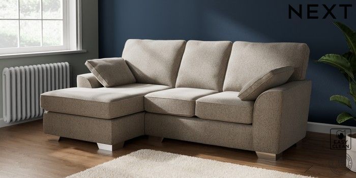 7.2.10 Stamford Small Sofa Chaise - Left Hand Chunky Boucle Easy Clean Dove Large Square Angle - Chrome Metal | Made Click here to use our website with more accessibility support, for example screen readers