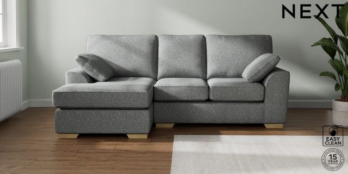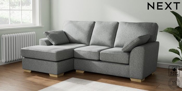 7.2.10 Stamford Small Sofa Chaise - Left Hand Chunky Boucle Easy Clean Mid Grey Large Square Angle - Light | Made Click here to use our website with more accessibility support, for example screen readers