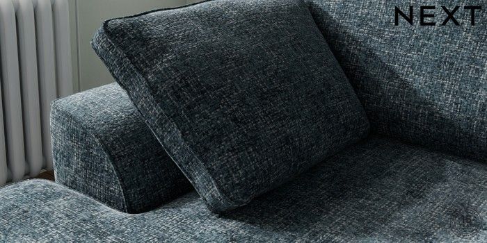 7.2.10 Stamford Small Sofa Chaise - Left Hand Chunky Chenille Dark Navy Blue Large Square Angle - Brushed Brass | Made Click here to use our website with more accessibility support, for example screen readers