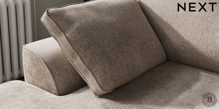 7.2.10 Stamford Small Sofa Chaise - Left Hand Chunky Chenille Light Dove Large Square Angle - Brushed Brass | Made Click here to use our website with more accessibility support, for example screen readers