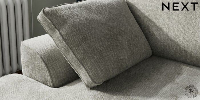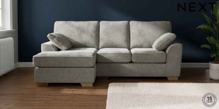 7.2.10 Stamford Small Sofa Chaise - Left Hand Chunky Chenille Light Grey Large Square Angle - Brushed Brass | Made Click here to use our website with more accessibility support, for example screen readers