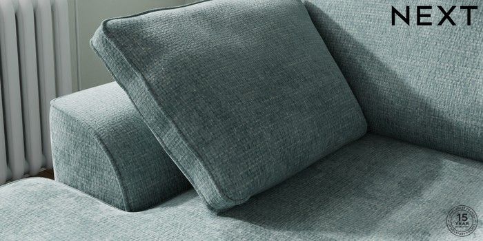 7.2.10 Stamford Small Sofa Chaise - Left Hand Chunky Chenille Light Teal Green Large Square Angle - Gunmetal | Made Click here to use our website with more accessibility support, for example screen readers