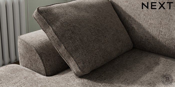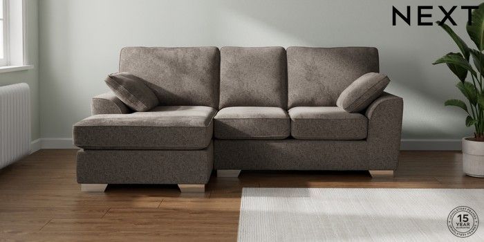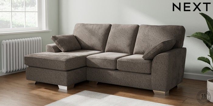7.2.10 Stamford Small Sofa Chaise - Left Hand Chunky Chenille Mink Brown Large Square Angle - Chrome Metal | Made Click here to use our website with more accessibility support, for example screen readers