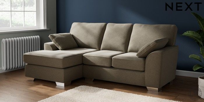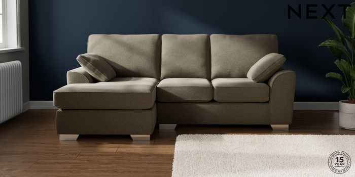 7.2.10 Stamford Small Sofa Chaise - Left Hand Chunky Marl Light Olive Green Large Square Angle - Chrome Metal | Made Click here to use our website with more accessibility support, for example screen readers