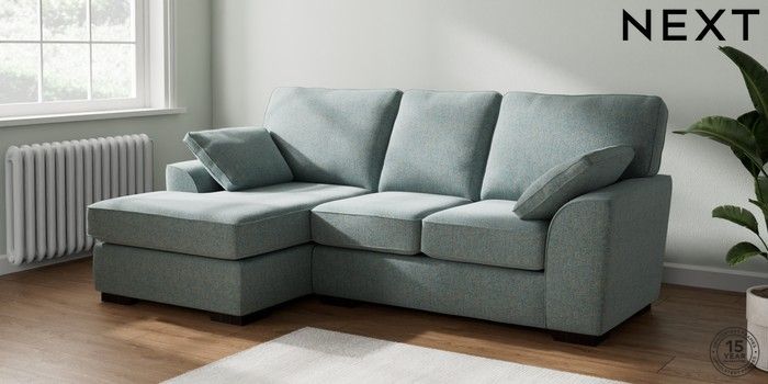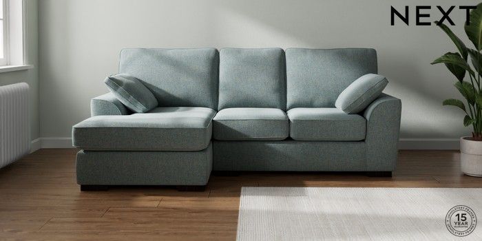 7.2.10 Stamford Small Sofa Chaise - Left Hand Chunky Marl Mid Blue Large Square Angle - Dark | Made Click here to use our website with more accessibility support, for example screen readers