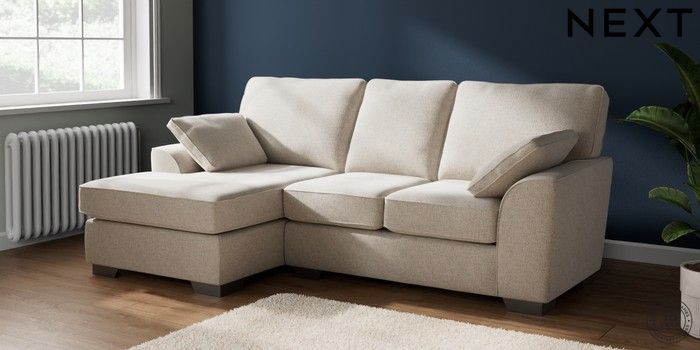 7.2.10 Stamford Small Sofa Chaise - Left Hand Chunky Marl Oyster Large Square Angle - Gunmetal | Made Click here to use our website with more accessibility support, for example screen readers