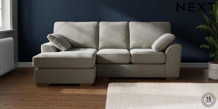 7.2.10 Stamford Small Sofa Chaise - Left Hand Chunky Texture Dove Large Square Angle - Mid | Made Click here to use our website with more accessibility support, for example screen readers