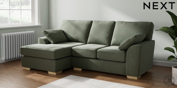 7.2.10 Stamford Small Sofa Chaise - Left Hand Chunky Texture Mid Forest Green Large Square Angle - Light | Made Click here to use our website with more accessibility support, for example screen readers