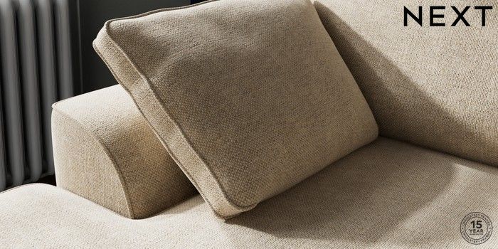 7.2.10 Stamford Small Sofa Chaise - Left Hand Chunky Weave Cream Large Square Angle - Brushed Brass | Made Click here to use our website with more accessibility support, for example screen readers
