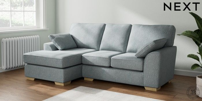 7.2.10 Stamford Small Sofa Chaise - Left Hand Chunky Weave Mid Blue Large Square Angle - Light | Made Click here to use our website with more accessibility support, for example screen readers