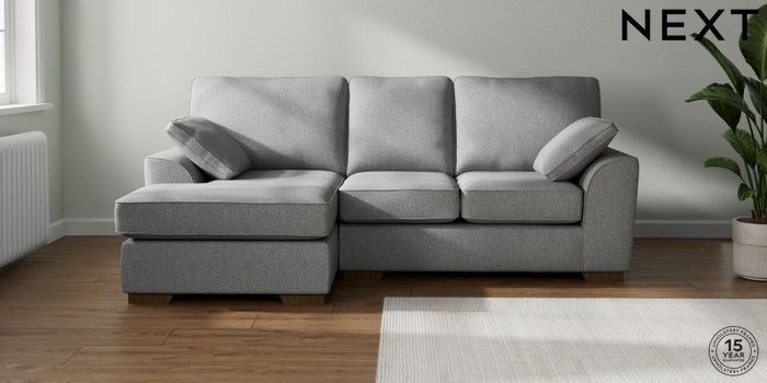 7.2.10 Stamford Small Sofa Chaise - Left Hand Chunky Weave Mid Grey Large Square Angle - Mid | Made Click here to use our website with more accessibility support, for example screen readers