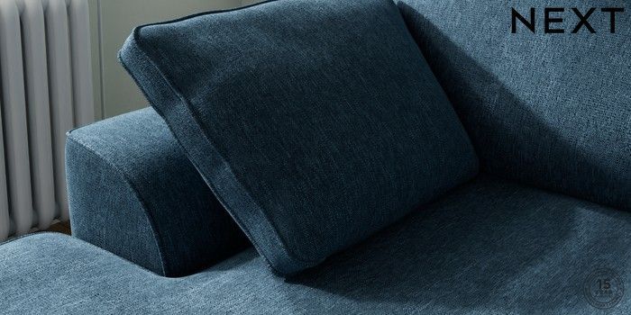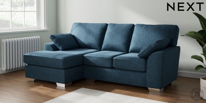 7.2.10 Stamford Small Sofa Chaise - Left Hand Cotswold Chenille Dark Blue Large Square Angle - Chrome Metal | Made Click here to use our website with more accessibility support, for example screen readers