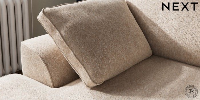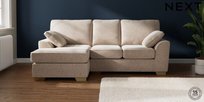 7.2.10 Stamford Small Sofa Chaise - Left Hand Cotswold Chenille Light Natural Large Square Angle - Brushed Brass | Made Click here to use our website with more accessibility support, for example screen readers