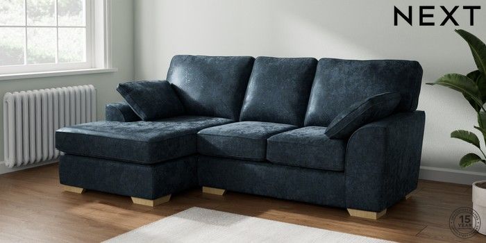 7.2.10 Stamford Small Sofa Chaise - Left Hand Distressed Velour Midnight Blue Large Square Angle - Light | Made Click here to use our website with more accessibility support, for example screen readers