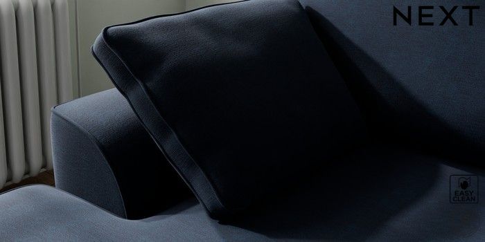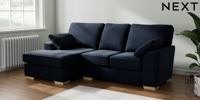 7.2.10 Stamford Small Sofa Chaise - Left Hand Fine Chenille Easy Clean Dark Navy Blue Large Square Angle - Light | Made Click here to use our website with more accessibility support, for example screen readers