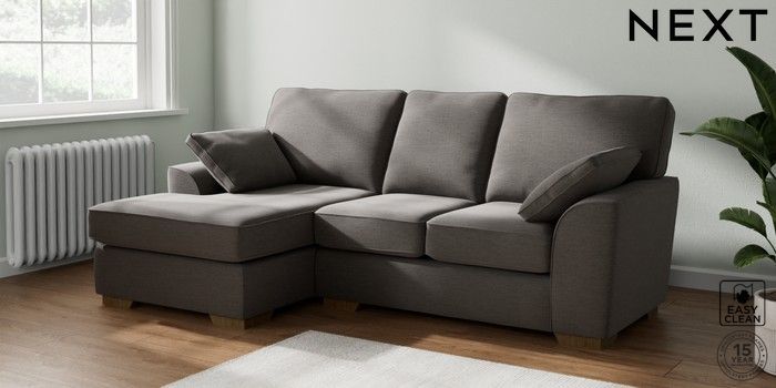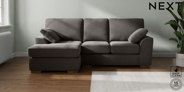 7.2.10 Stamford Small Sofa Chaise - Left Hand Fine Chenille Easy Clean Dark Smoke Grey Large Square Angle - Mid | Made Click here to use our website with more accessibility support, for example screen readers