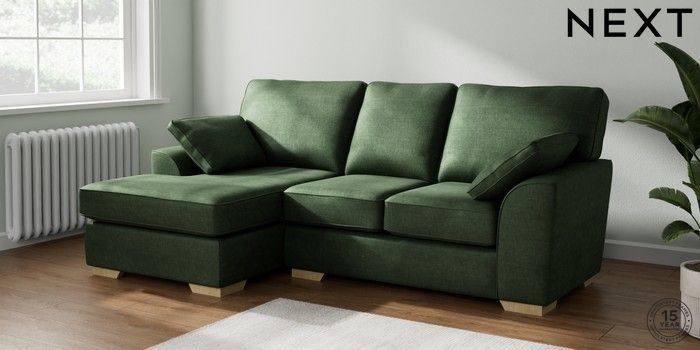 7.2.10 Stamford Small Sofa Chaise - Left Hand Luxe Chenille Dark Green Large Square Angle - Light | Made Click here to use our website with more accessibility support, for example screen readers