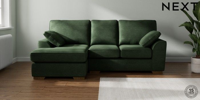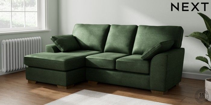 7.2.10 Stamford Small Sofa Chaise - Left Hand Luxe Chenille Dark Green Large Square Angle - Mid | Made Click here to use our website with more accessibility support, for example screen readers