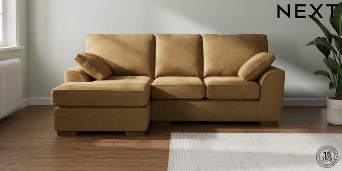 7.2.10 Stamford Small Sofa Chaise - Left Hand Luxe Chenille Honey Yellow Large Square Angle - Mid | Made Click here to use our website with more accessibility support, for example screen readers
