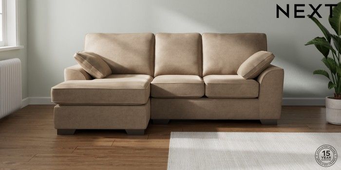 7.2.10 Stamford Small Sofa Chaise - Left Hand Luxe Chenille Mid Camel Beige Large Square Angle - Gunmetal | Made Click here to use our website with more accessibility support, for example screen readers
