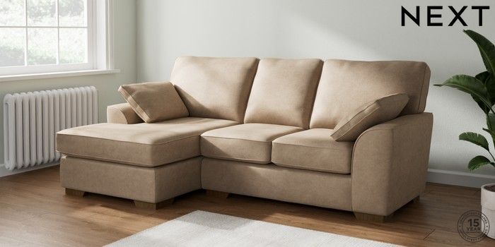 7.2.10 Stamford Small Sofa Chaise - Left Hand Luxe Chenille Mid Camel Beige Large Square Angle - Mid | Made Click here to use our website with more accessibility support, for example screen readers