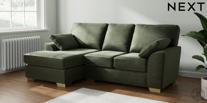 7.2.10 Stamford Small Sofa Chaise - Left Hand Luxe Chenille Mid Green Large Square Angle - Brushed Brass | Made Click here to use our website with more accessibility support, for example screen readers