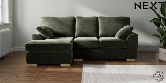 7.2.10 Stamford Small Sofa Chaise - Left Hand Luxe Chenille Mid Green Large Square Angle - Light | Made Click here to use our website with more accessibility support, for example screen readers