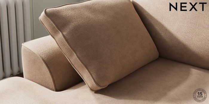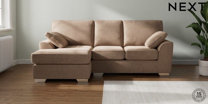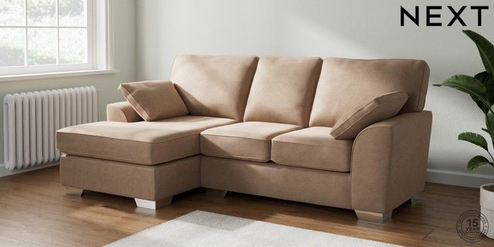 7.2.10 Stamford Small Sofa Chaise - Left Hand Luxe Chenille Mid Natural Large Square Angle - Chrome Metal | Made Click here to use our website with more accessibility support, for example screen readers