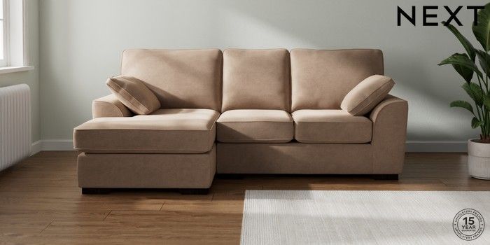 7.2.10 Stamford Small Sofa Chaise - Left Hand Luxe Chenille Mid Natural Large Square Angle - Dark | Made Click here to use our website with more accessibility support, for example screen readers