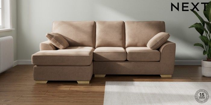 7.2.10 Stamford Small Sofa Chaise - Left Hand Luxe Chenille Mid Natural Large Square Angle - Light | Made Click here to use our website with more accessibility support, for example screen readers