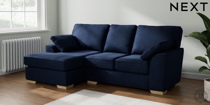 7.2.10 Stamford Small Sofa Chaise - Left Hand Luxe Chenille Navy Blue Large Square Angle - Light | Made Click here to use our website with more accessibility support, for example screen readers