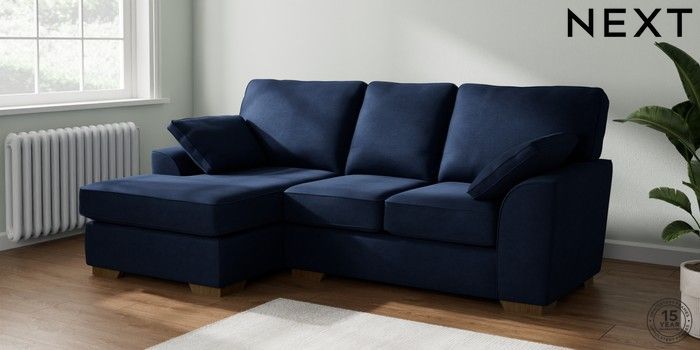 7.2.10 Stamford Small Sofa Chaise - Left Hand Luxe Chenille Navy Blue Large Square Angle - Mid | Made Click here to use our website with more accessibility support, for example screen readers