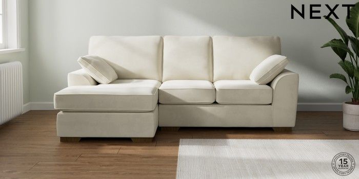 7.2.10 Stamford Small Sofa Chaise - Left Hand Luxe Chenille Oyster Large Square Angle - Mid | Made Click here to use our website with more accessibility support, for example screen readers